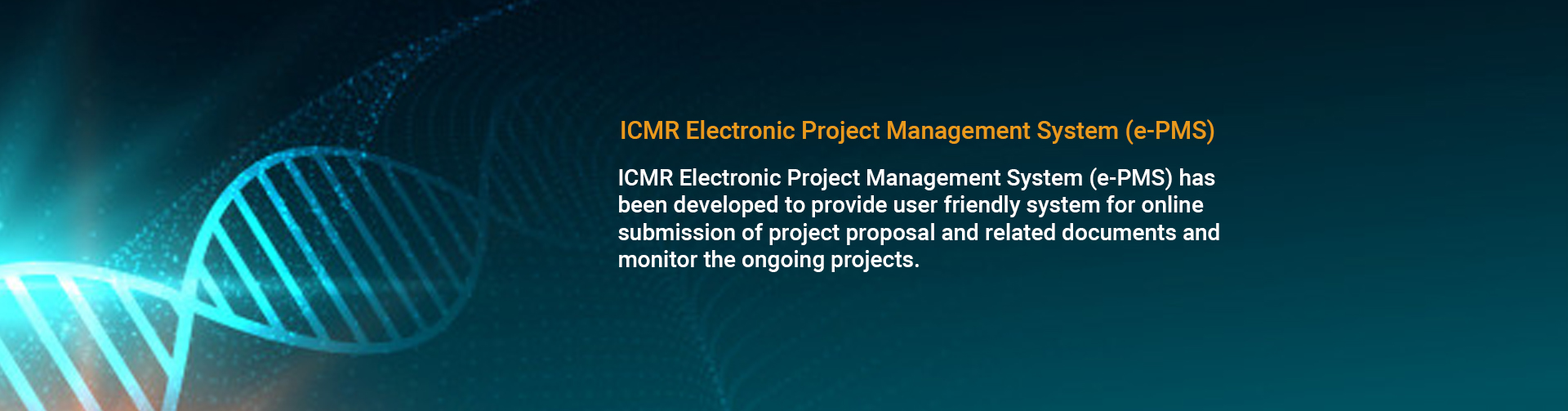 ICMR Electronic Project Management System (e-PMS) has been developed to provide user friendly system for online submission of project proposal and related documents and monitor the ongoing projects. This system facilitates to different stakeholders for the submission, retrieval and monitoring of the project related information.